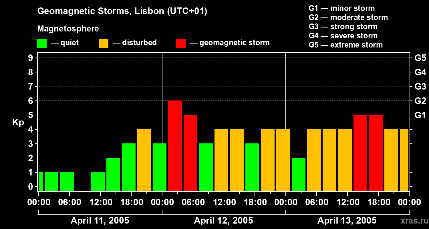 Geomagnetic storms in Lisbon — Apr 13, 2005