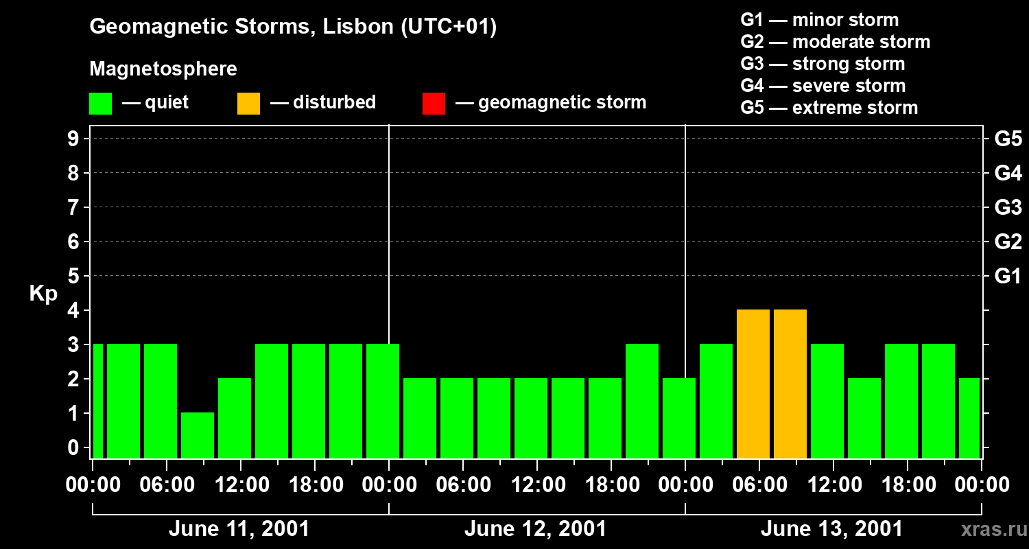 Geomagnetic storms in Lisbon on Jun 13, 2001