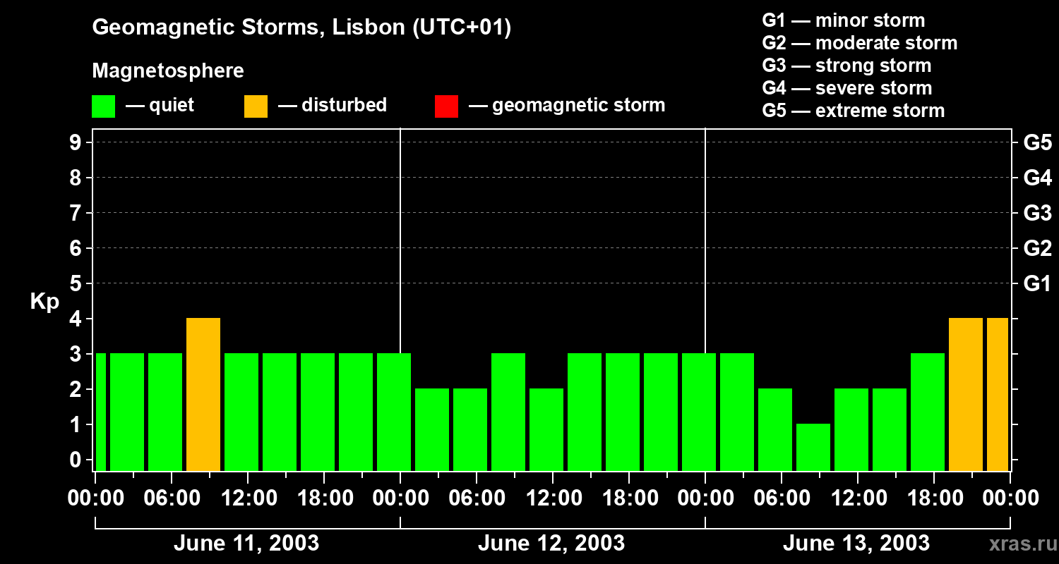 Geomagnetic storms in Lisbon on Jun 13, 2003