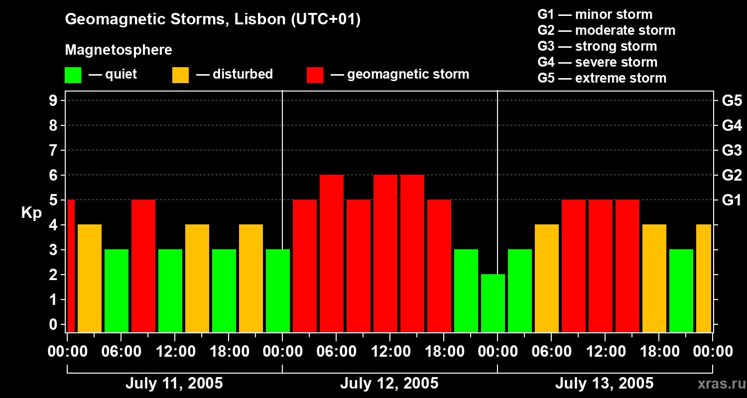 Geomagnetic storms in Lisbon — Jul 13, 2005