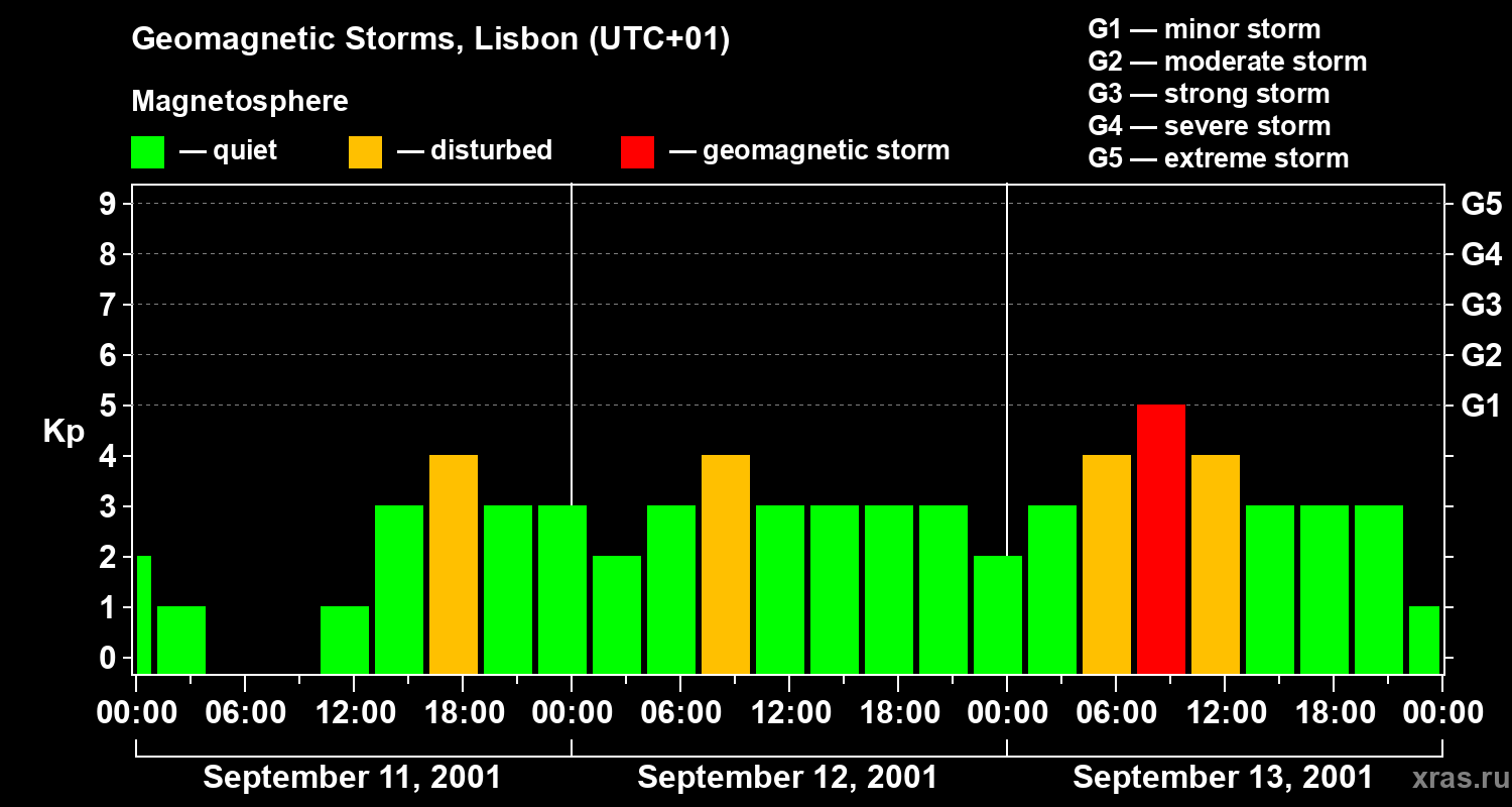 Geomagnetic storms in Lisbon — Sep 13, 2001