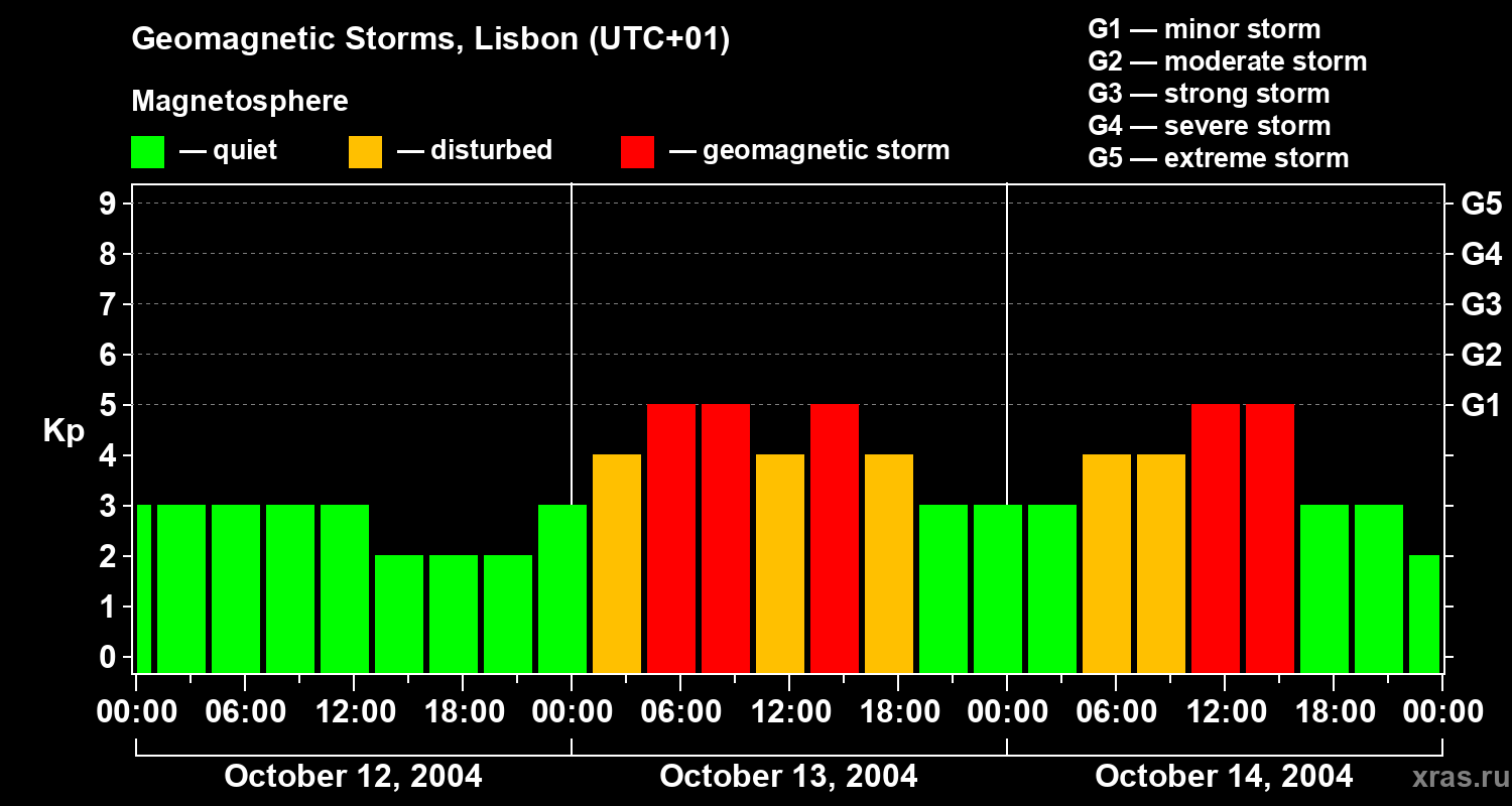 Geomagnetic storms in Lisbon — Oct 14, 2004