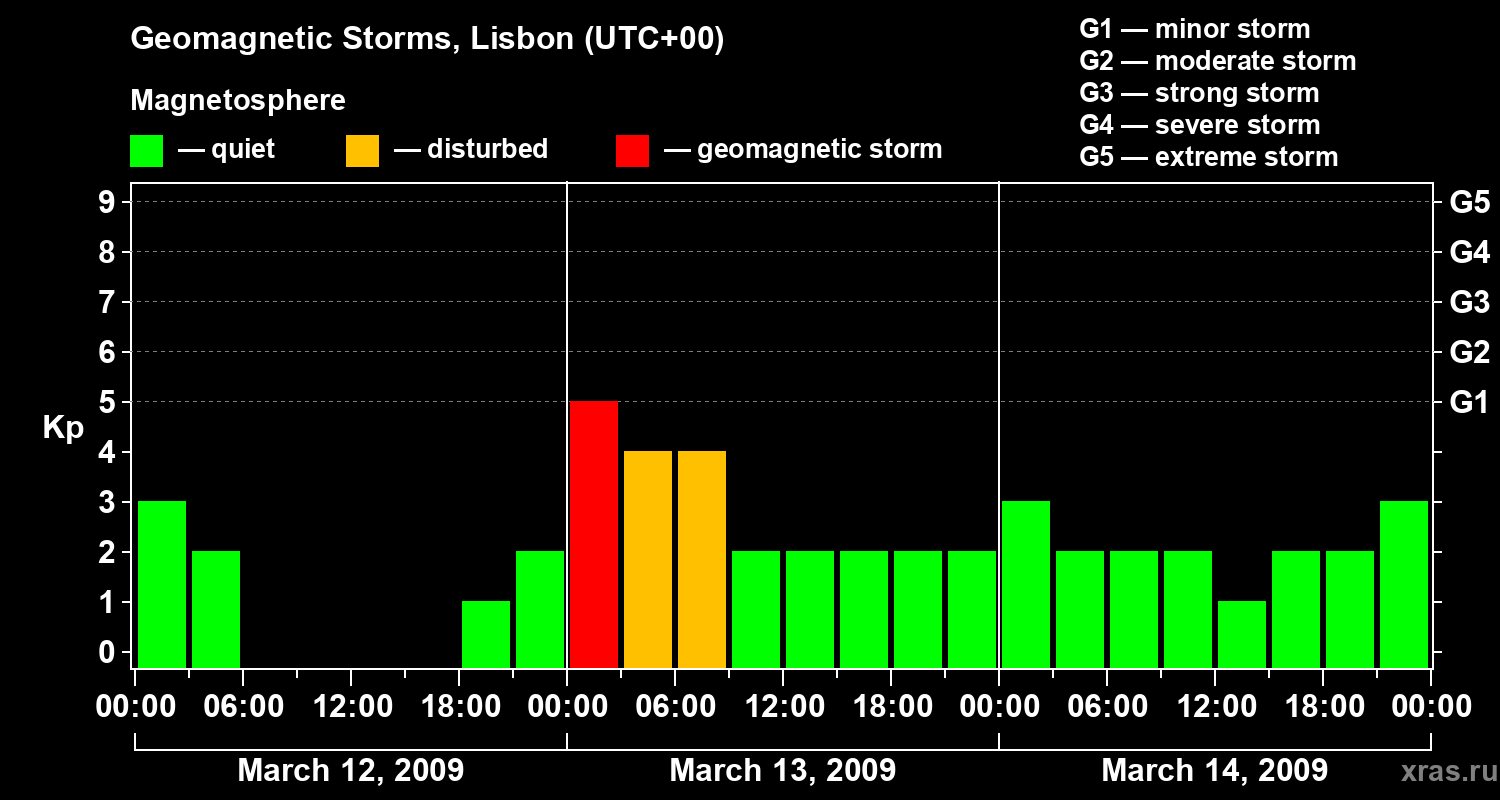 Geomagnetic storms in Lisbon — Mar 14, 2009