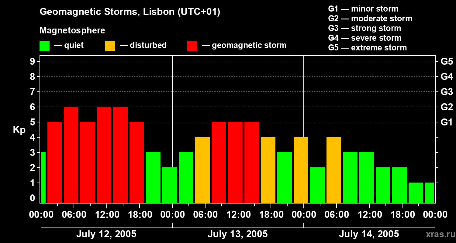 Geomagnetic storms in Lisbon — Jul 14, 2005