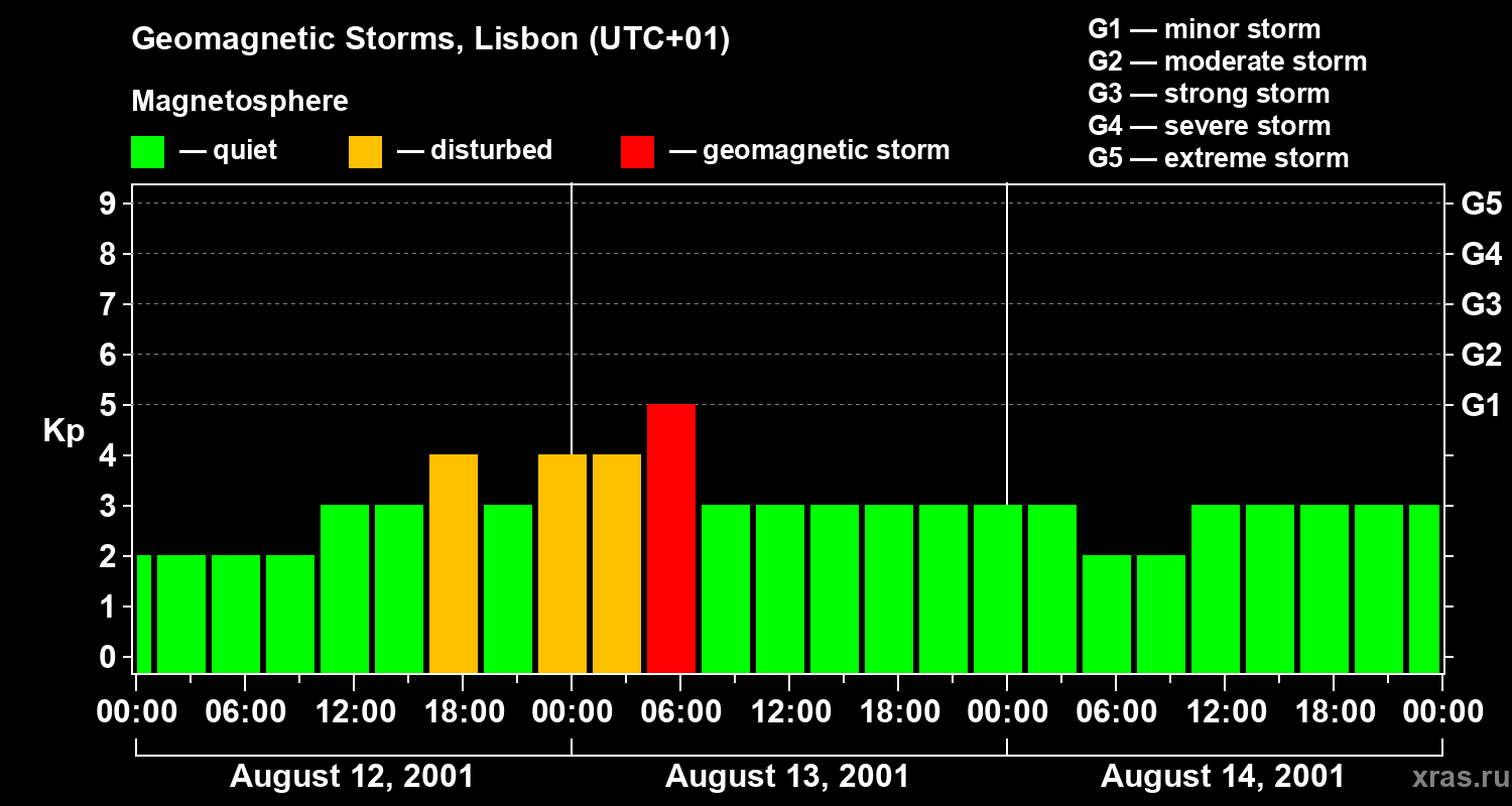 Geomagnetic storms in Lisbon — Aug 14, 2001