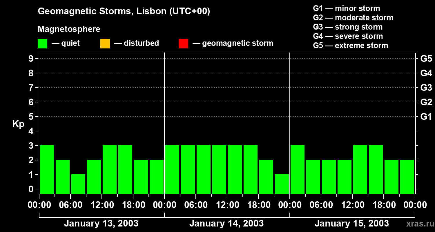 Geomagnetic storms in Lisbon — Jan 15, 2003