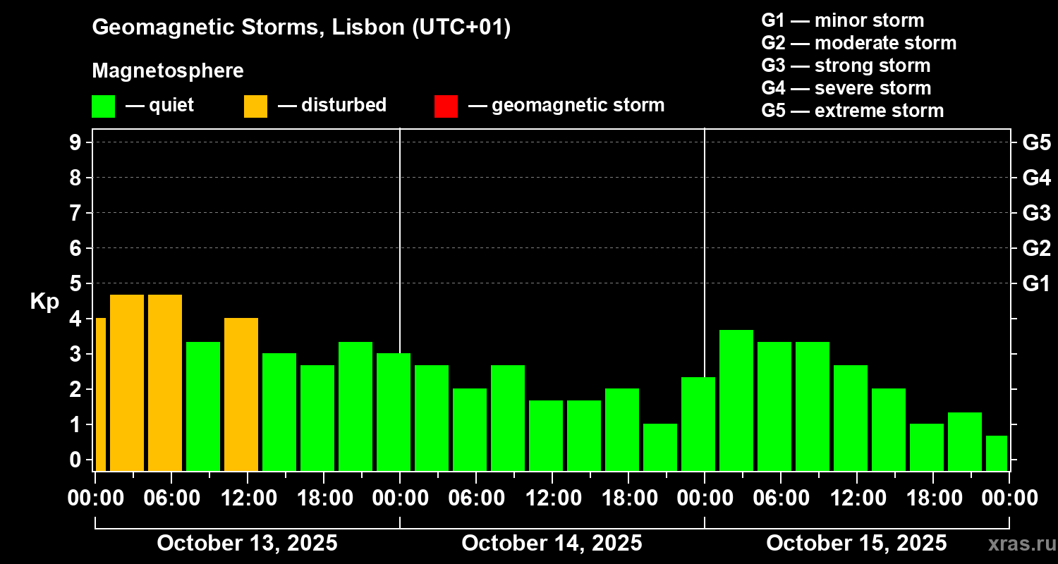 Geomagnetic storms in Lisbon in October 2025