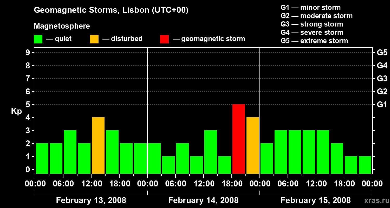 Geomagnetic storms in Lisbon — Feb 15, 2008