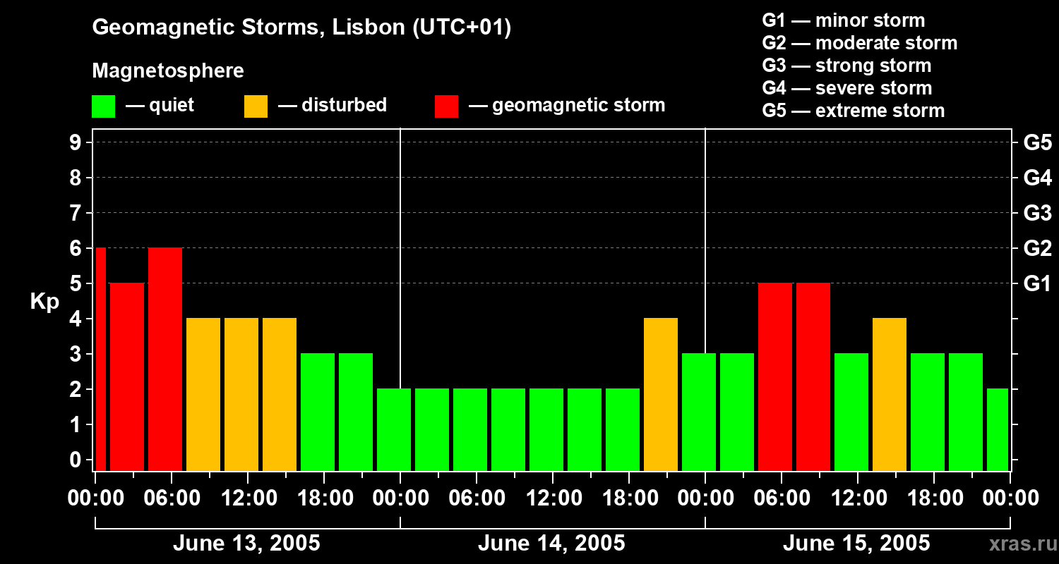 Geomagnetic storms in Lisbon on Jun 15, 2005