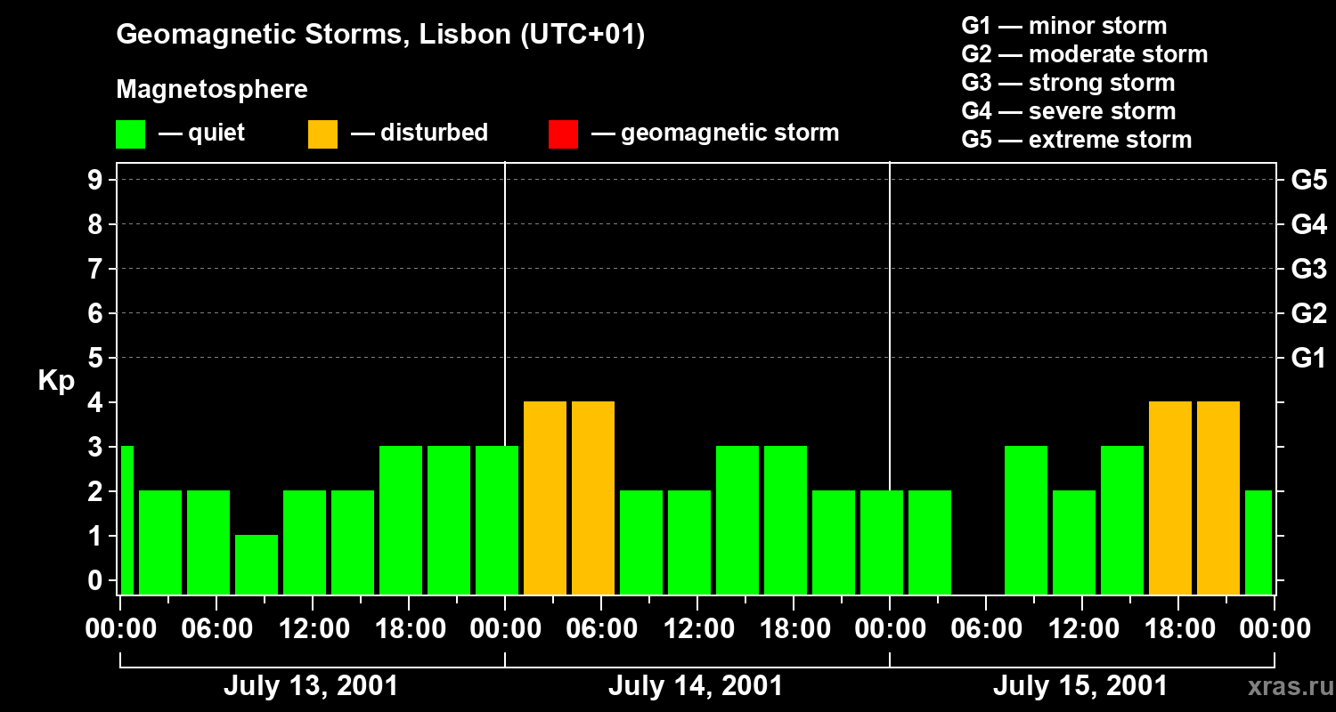Geomagnetic storms in Lisbon on Jul 15, 2001