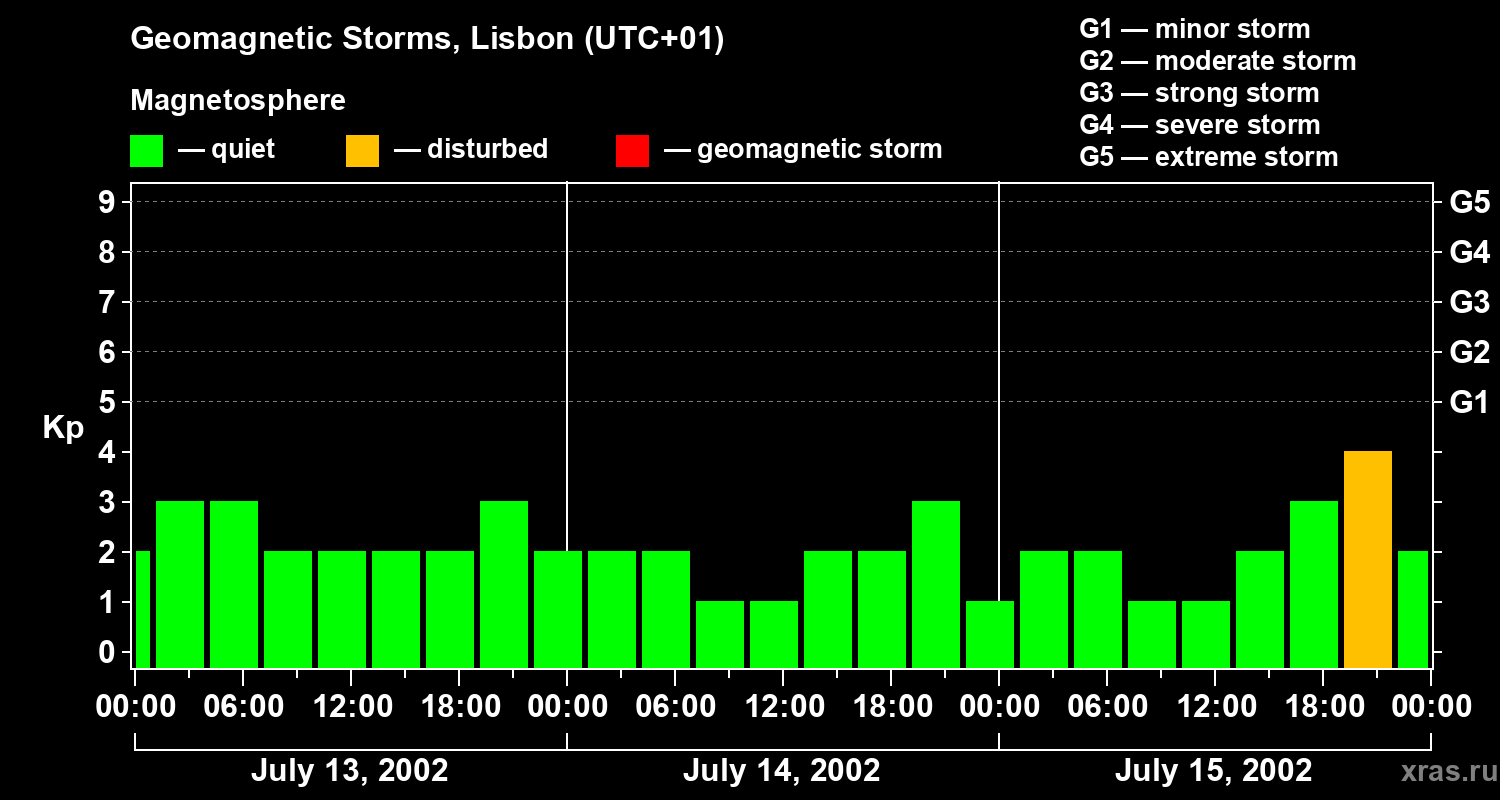 Geomagnetic storms in Lisbon on Jul 15, 2002
