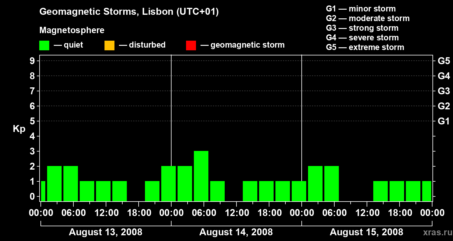Geomagnetic storms in Lisbon — Aug 15, 2008