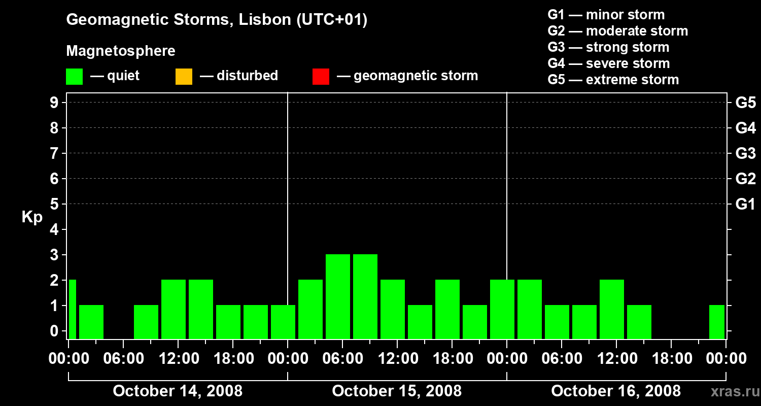 Geomagnetic storms in Lisbon — Oct 16, 2008