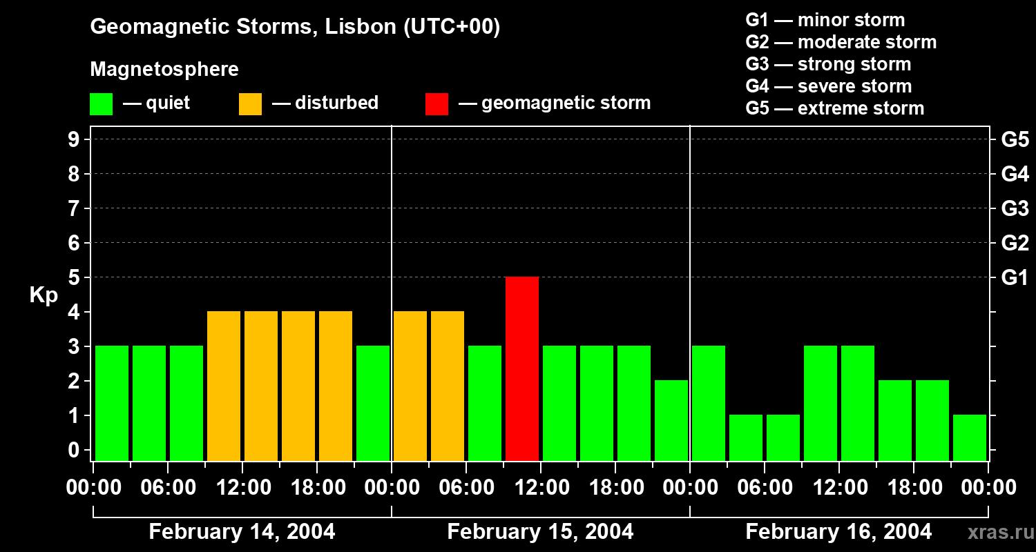 Geomagnetic storms in Lisbon — Feb 16, 2004