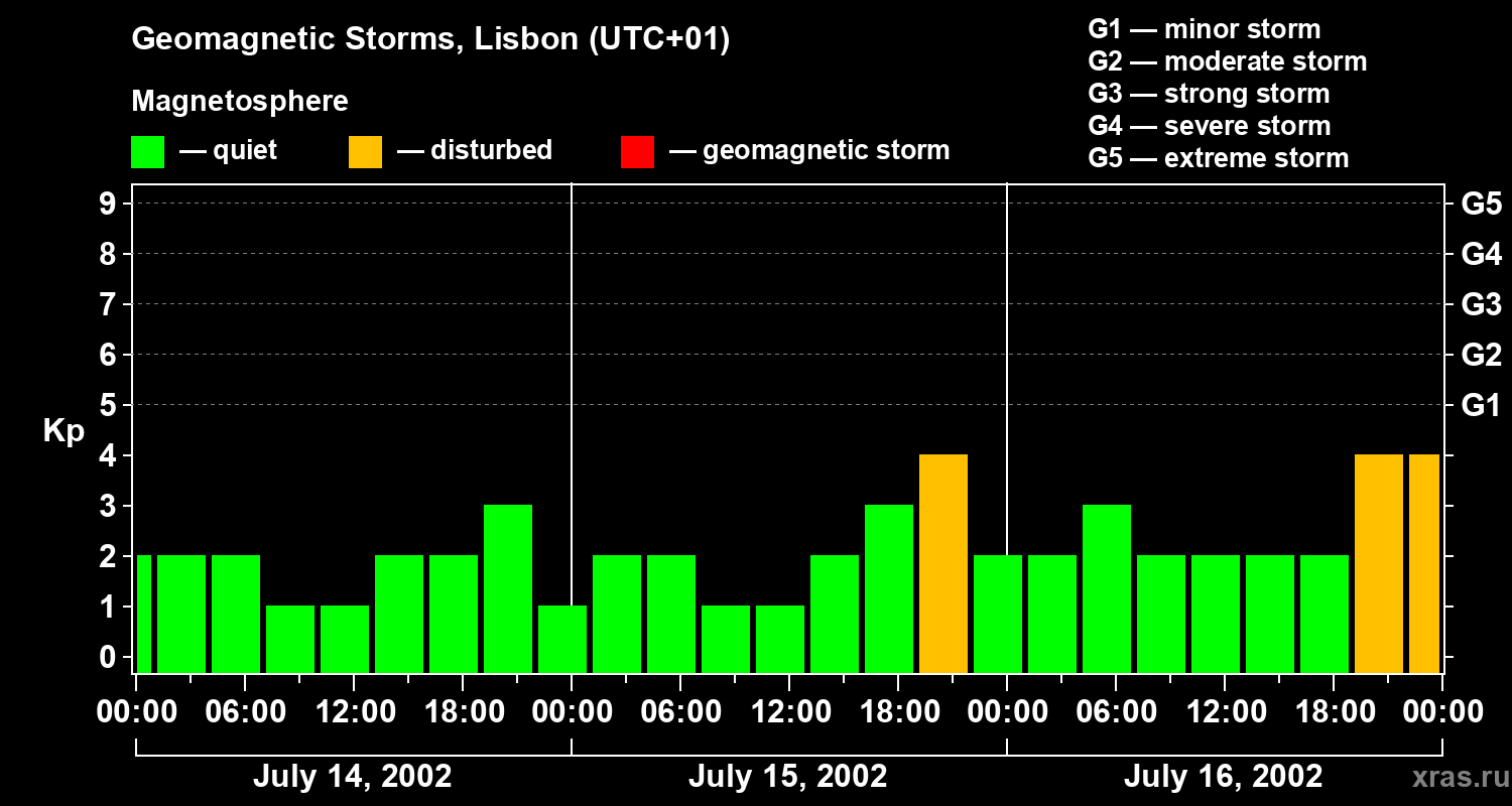 Geomagnetic storms in Lisbon on Jul 16, 2002