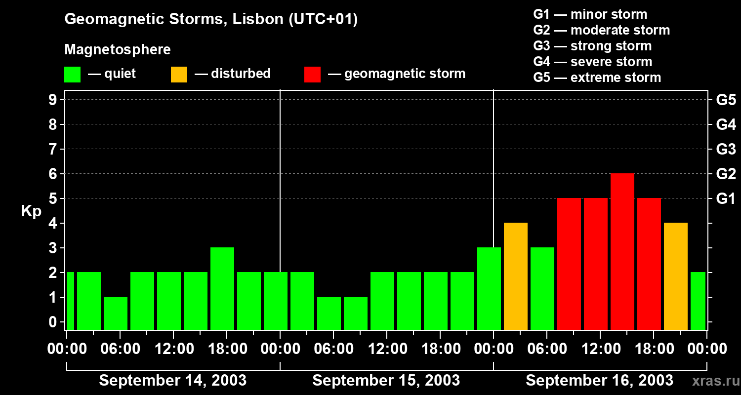 Geomagnetic storms in Lisbon — Sep 16, 2003