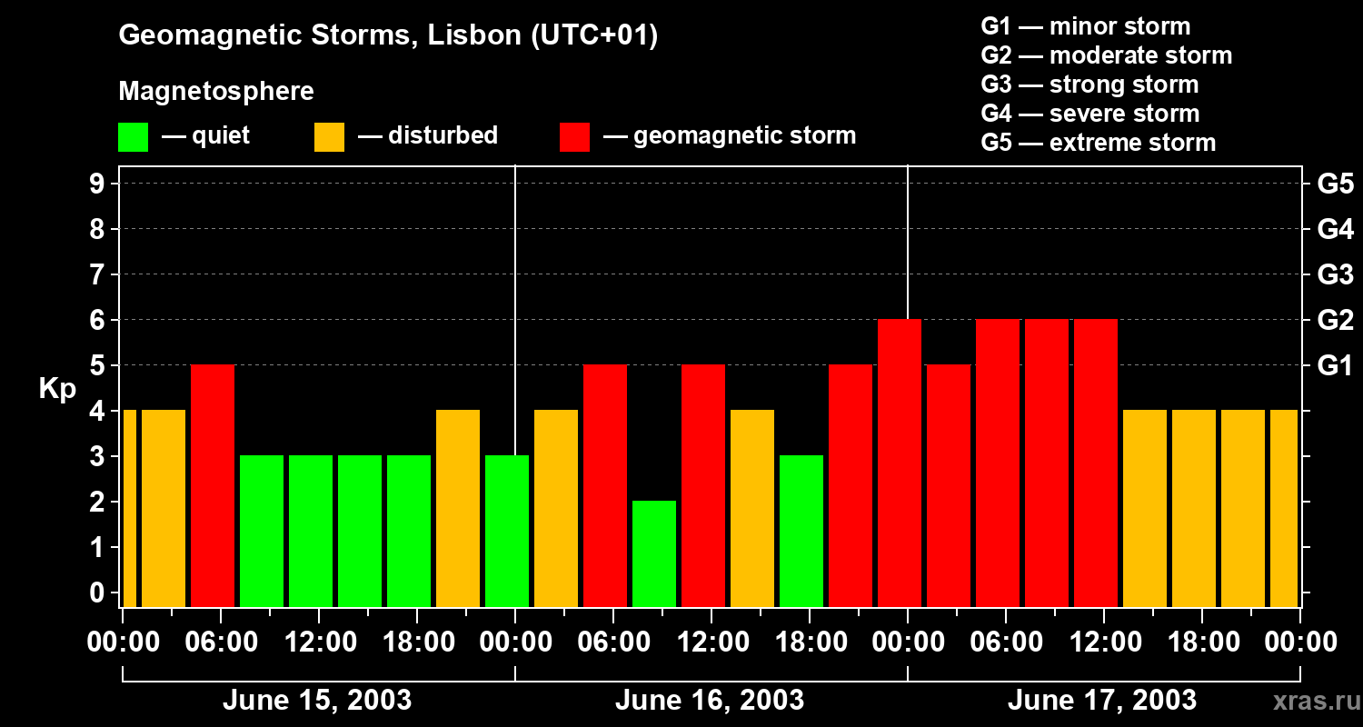 Geomagnetic storms in Lisbon on Jun 17, 2003
