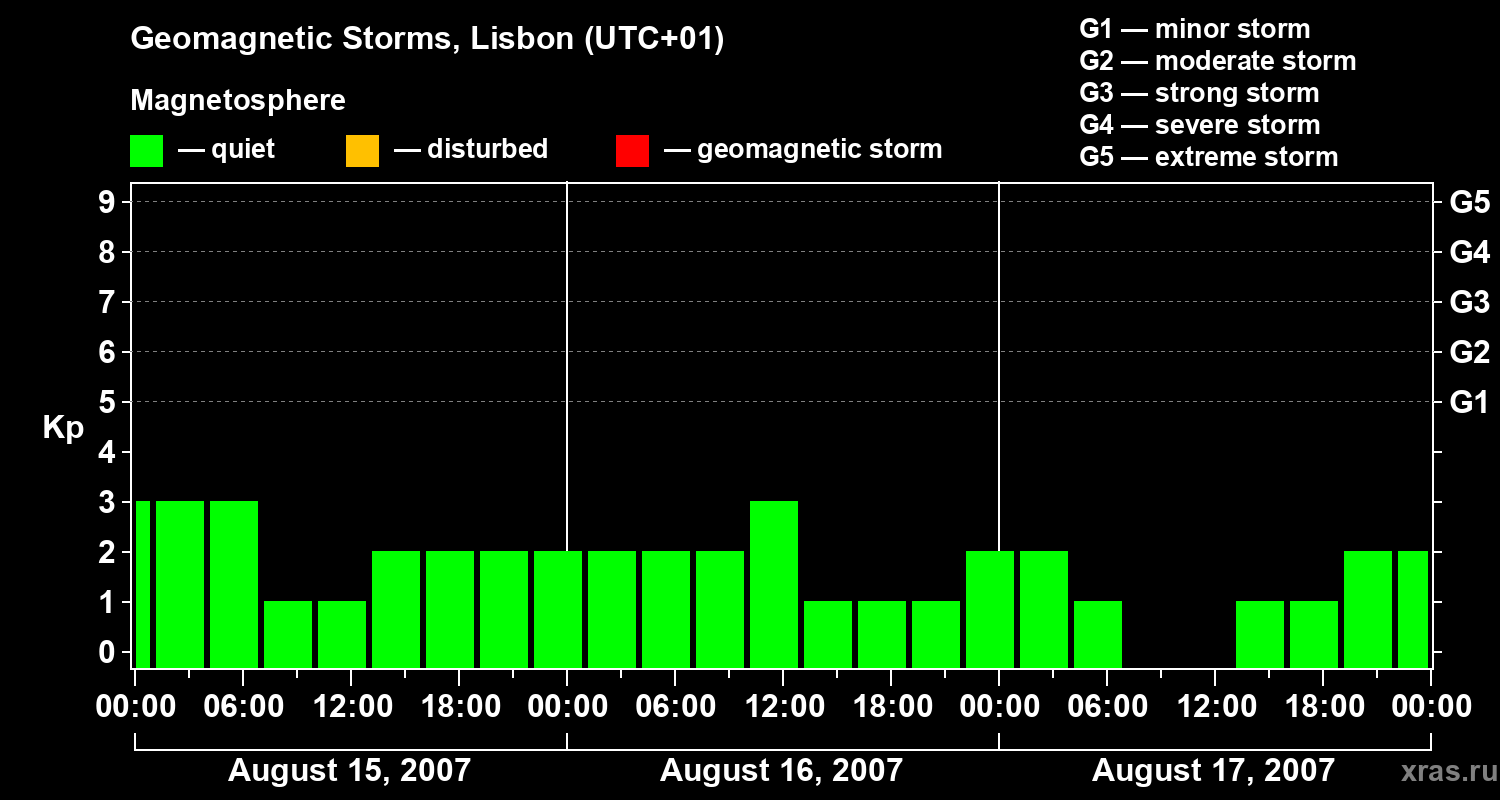 Geomagnetic storms in Lisbon — Aug 17, 2007