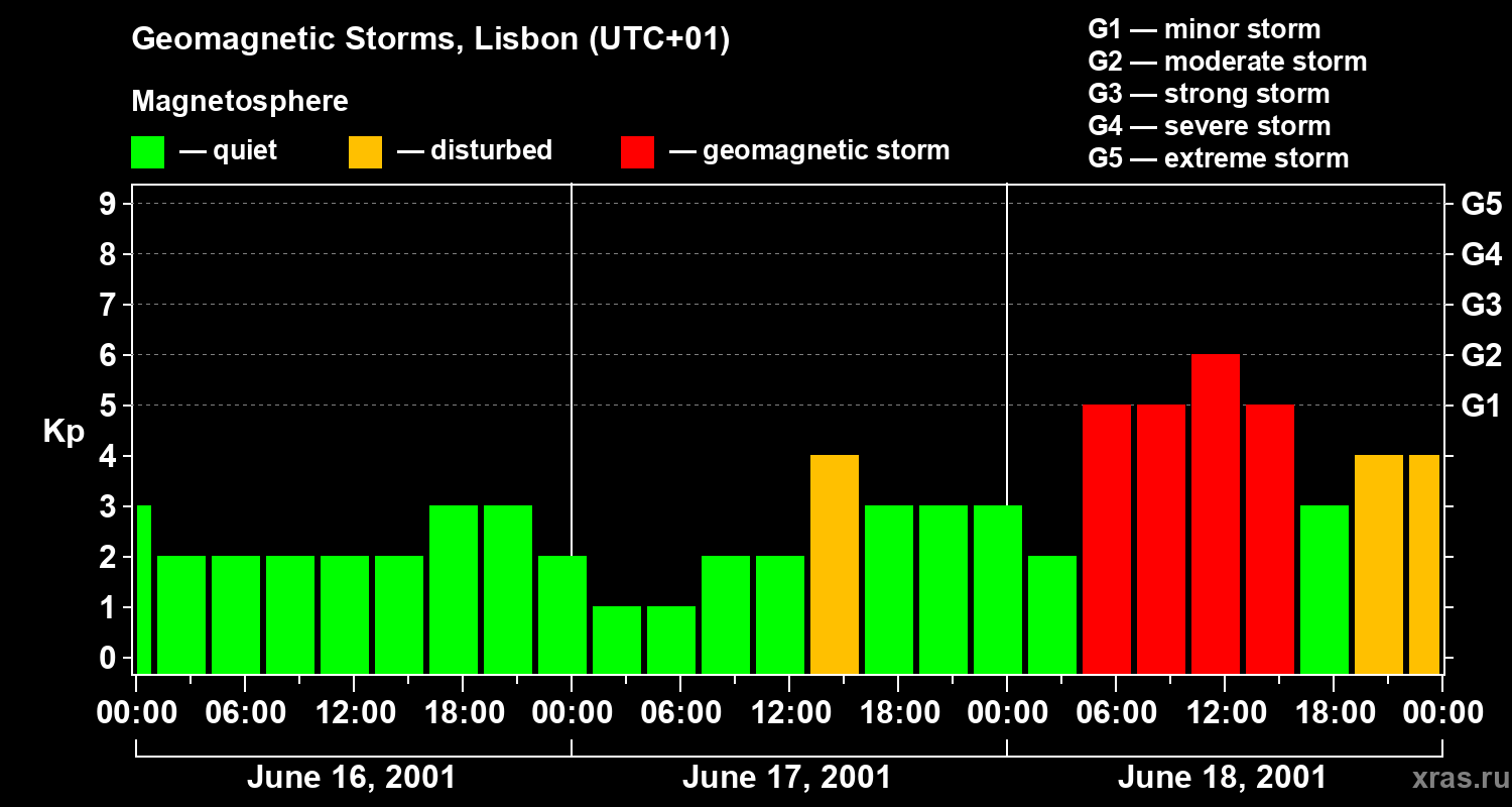 Geomagnetic storms in Lisbon on Jun 18, 2001
