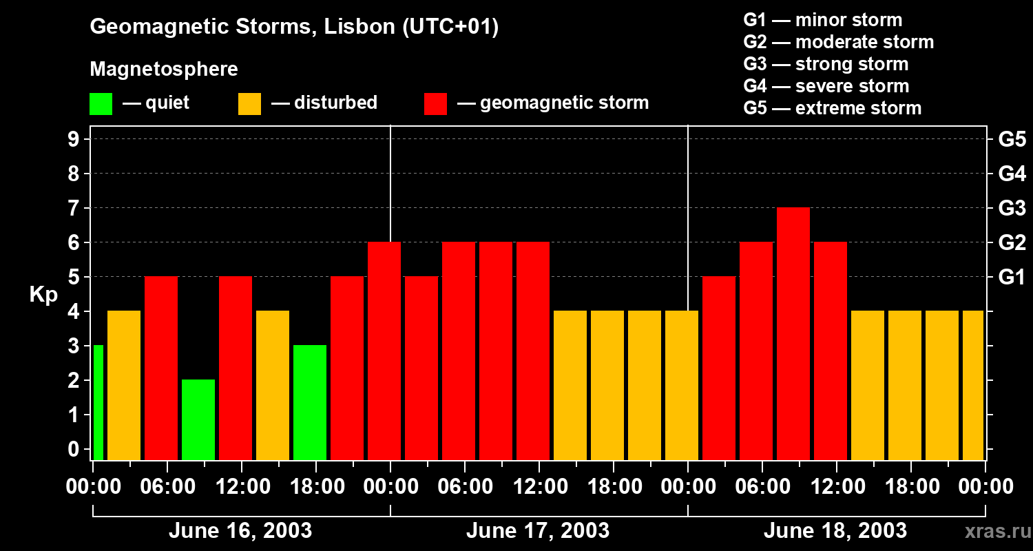Geomagnetic storms in Lisbon on Jun 18, 2003
