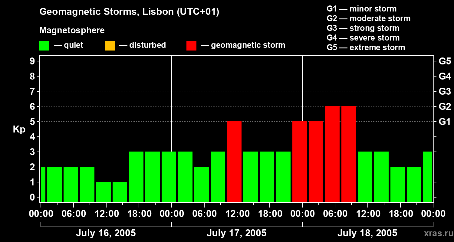 Geomagnetic storms in Lisbon on Jul 18, 2005