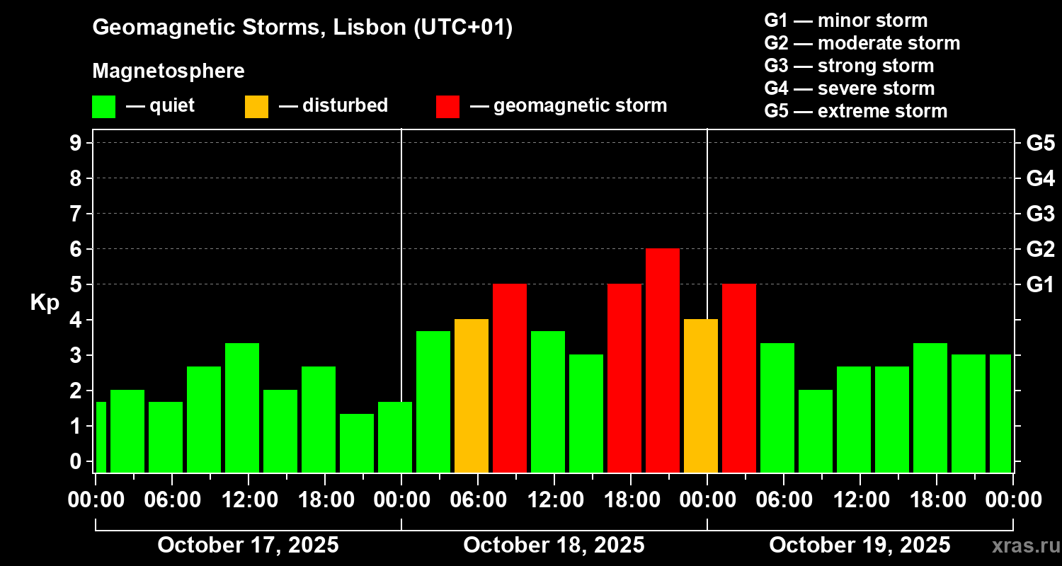 Geomagnetic storms in Lisbon — Oct 19, 2025