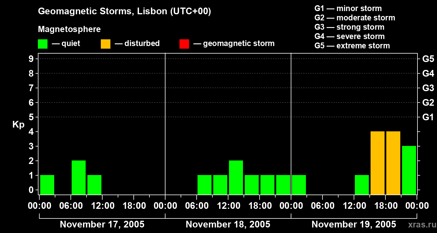 Geomagnetic storms in Lisbon — Nov 19, 2005