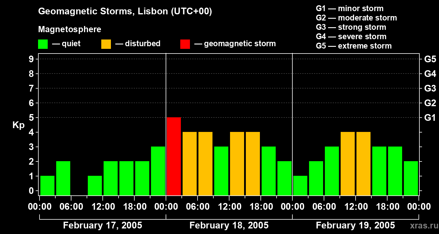 Geomagnetic storms in Lisbon — Feb 19, 2005