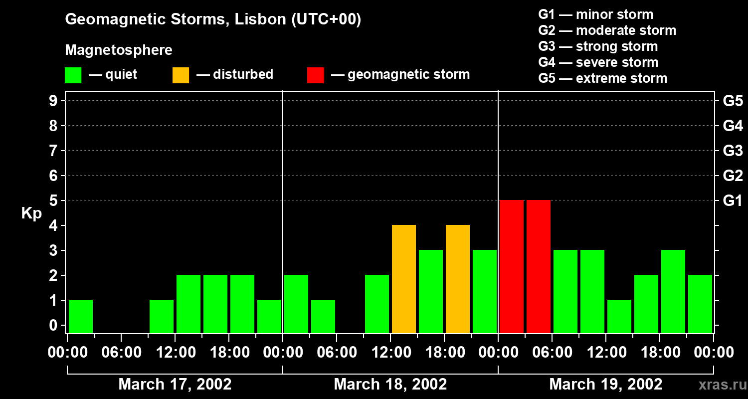 Geomagnetic storms in Lisbon — Mar 19, 2002