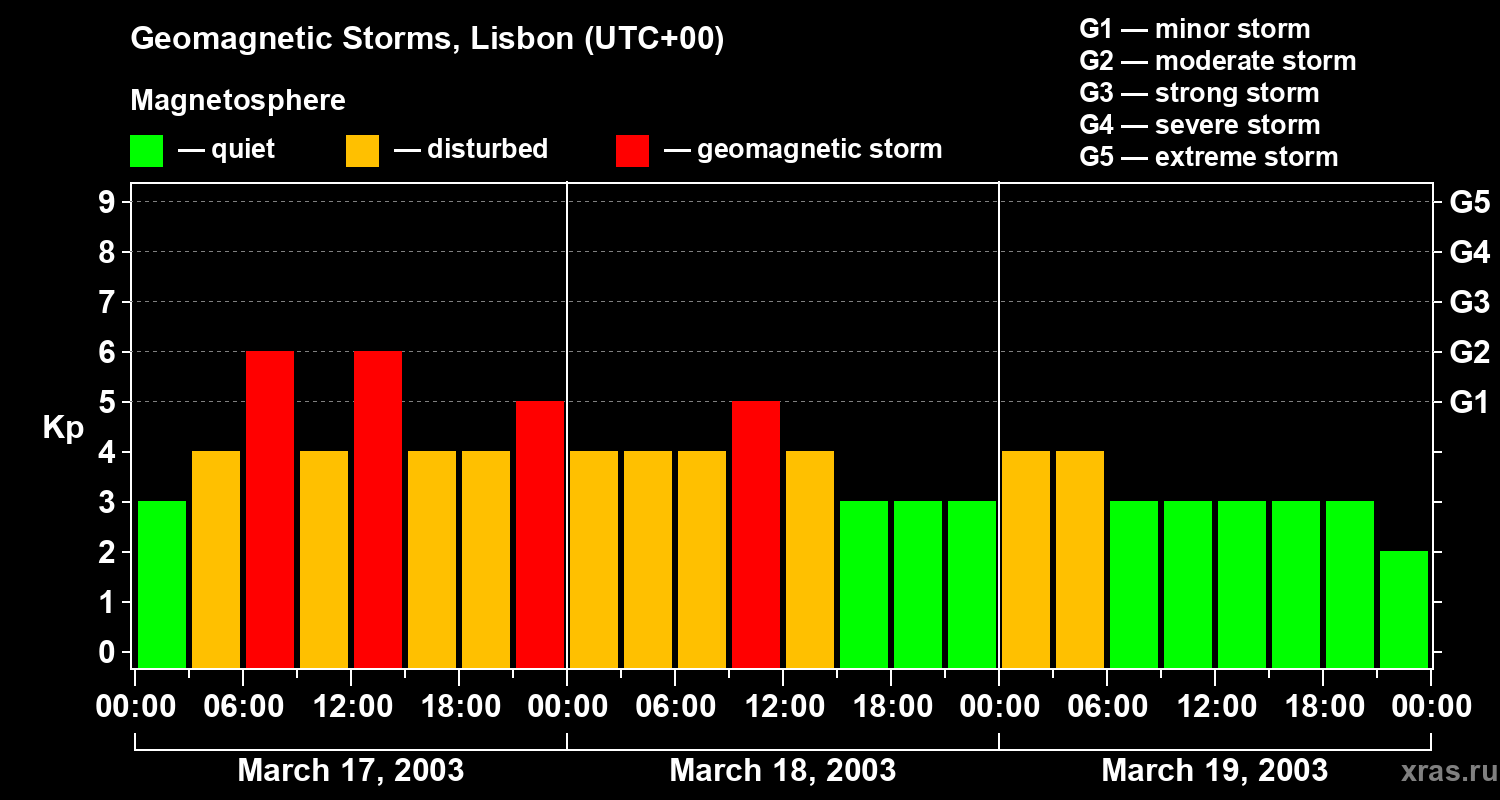 Geomagnetic storms in Lisbon — Mar 19, 2003