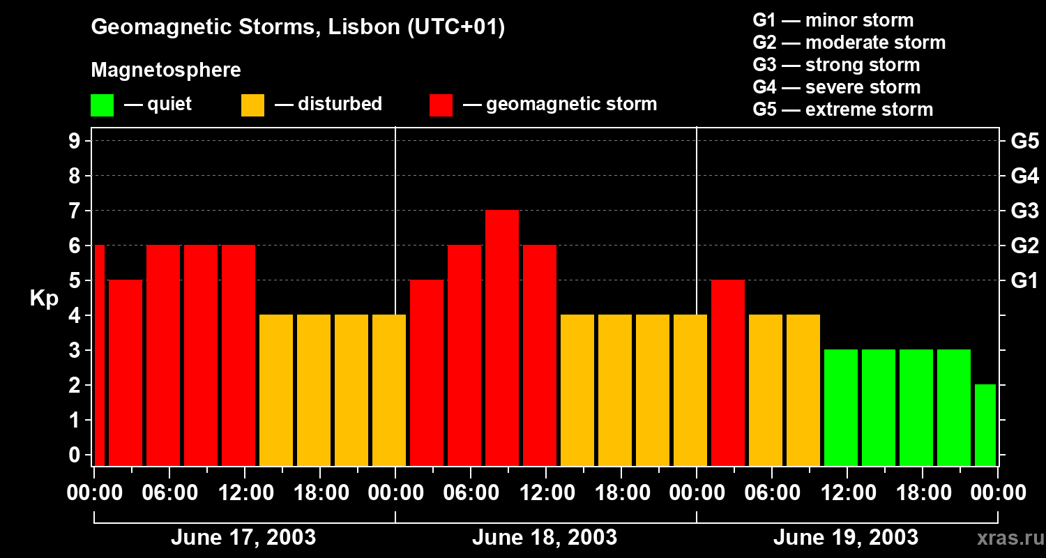 Geomagnetic storms in Lisbon — Jun 19, 2003