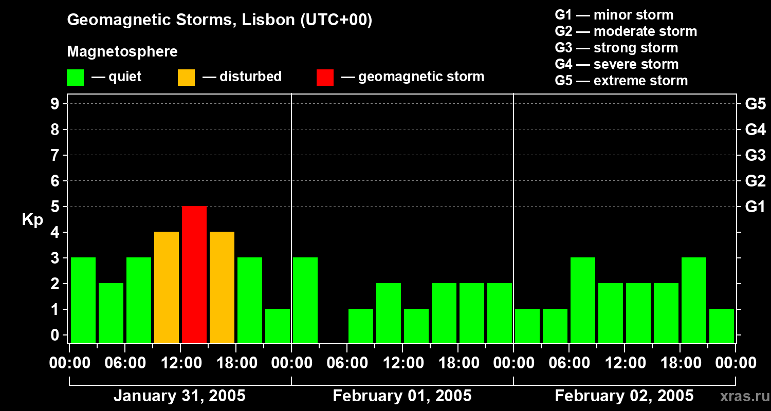 Geomagnetic storms in Lisbon on Feb 02, 2005