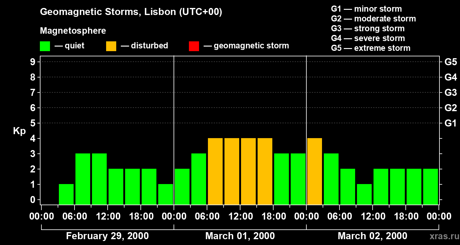 Geomagnetic storms in Lisbon on Mar 02, 2000