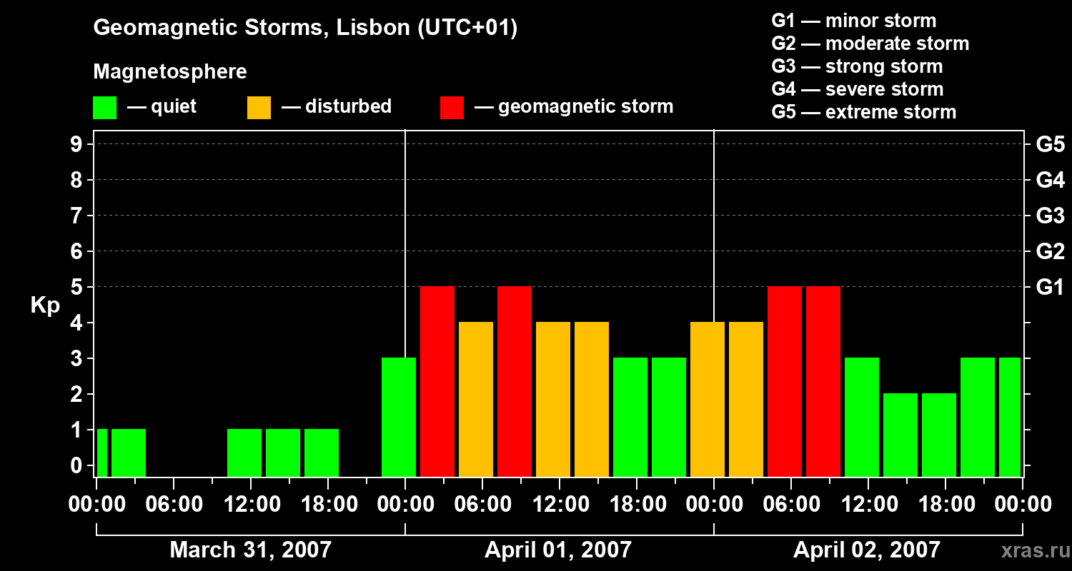 Geomagnetic storms in Lisbon — Apr 02, 2007