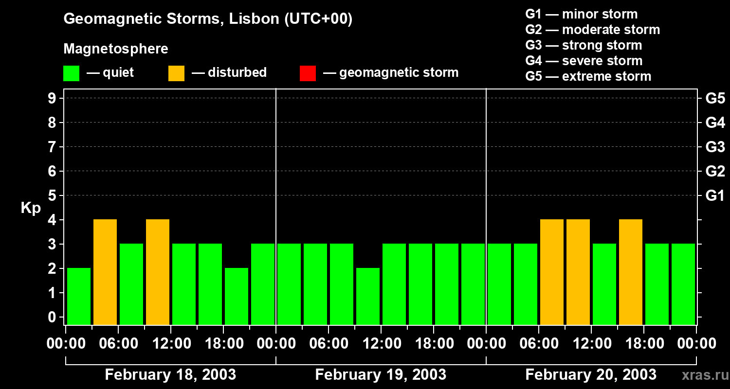 Geomagnetic storms in Lisbon — Feb 20, 2003