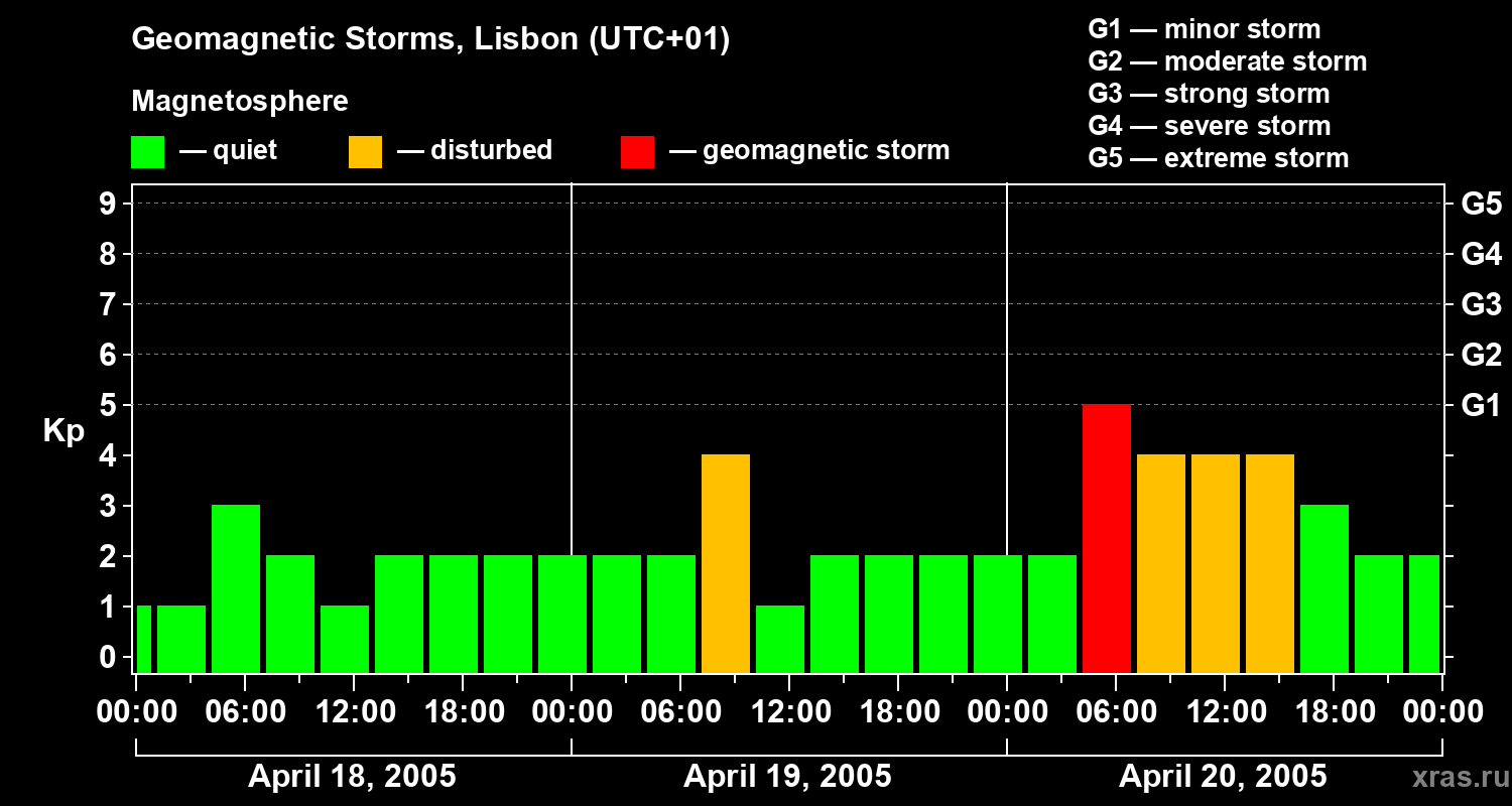 Geomagnetic storms in Lisbon — Apr 20, 2005