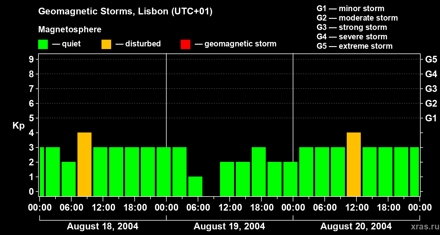 Geomagnetic storms in Lisbon — Aug 20, 2004