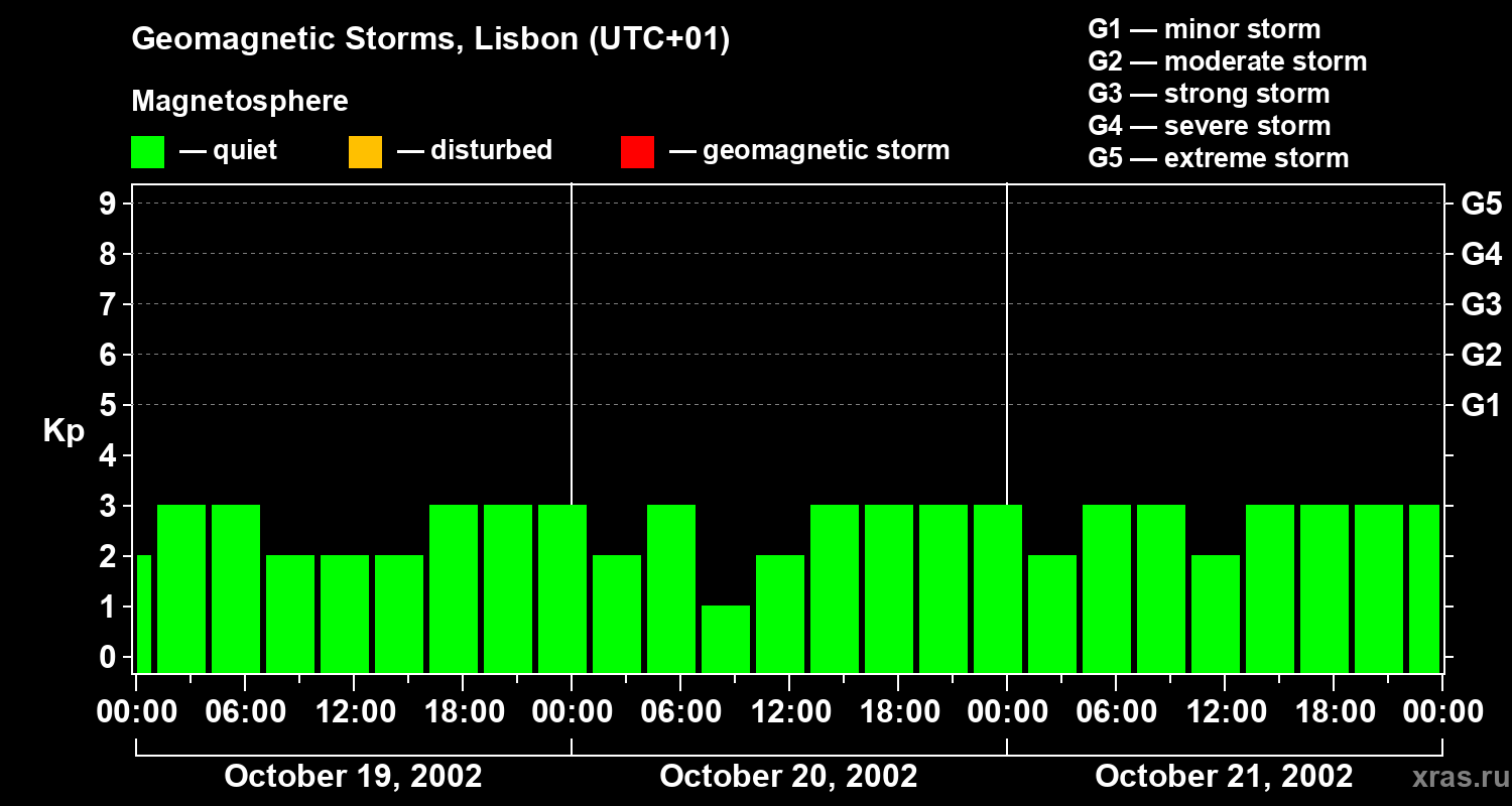 Geomagnetic storms in Lisbon — Oct 21, 2002