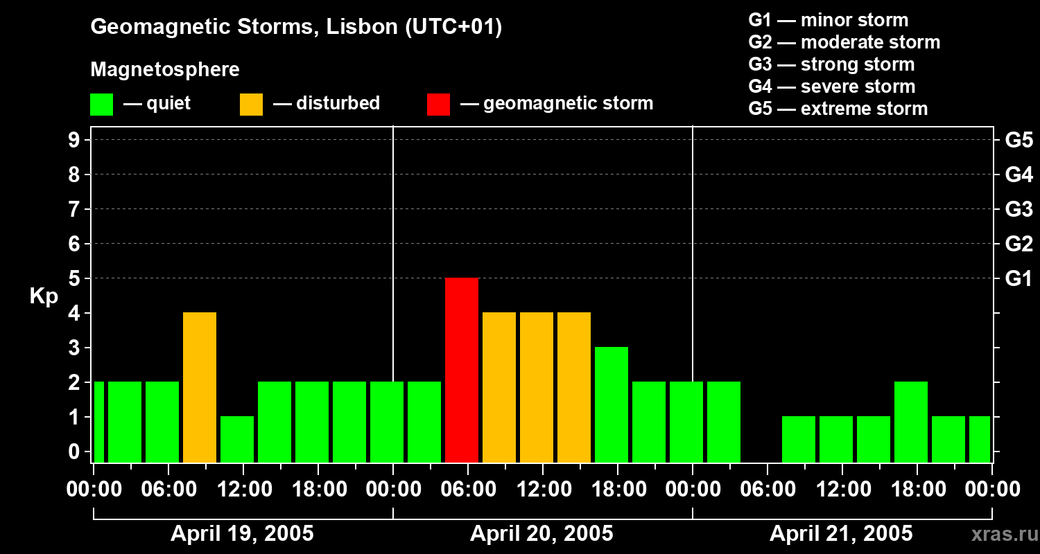 Geomagnetic storms in Lisbon — Apr 21, 2005