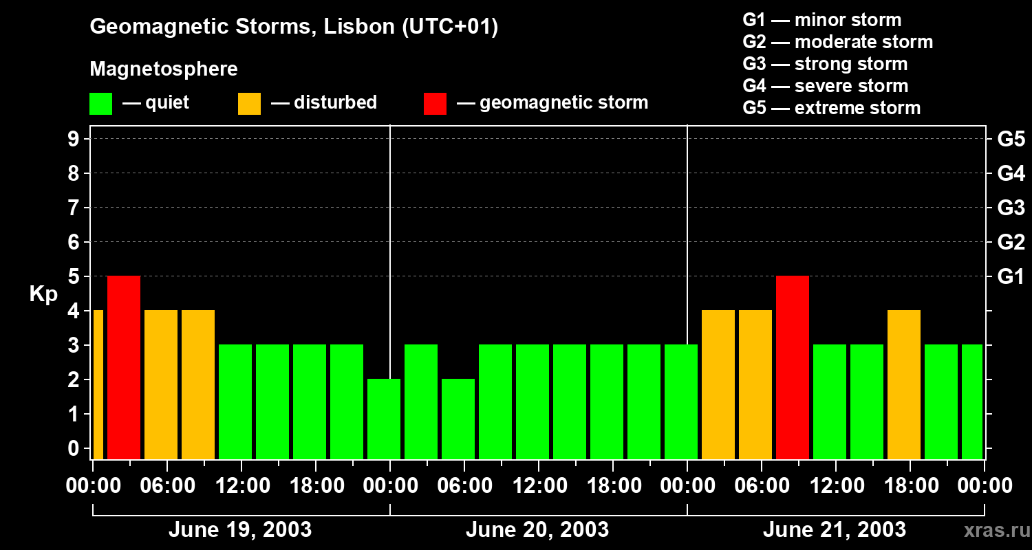 Geomagnetic storms in Lisbon on Jun 21, 2003