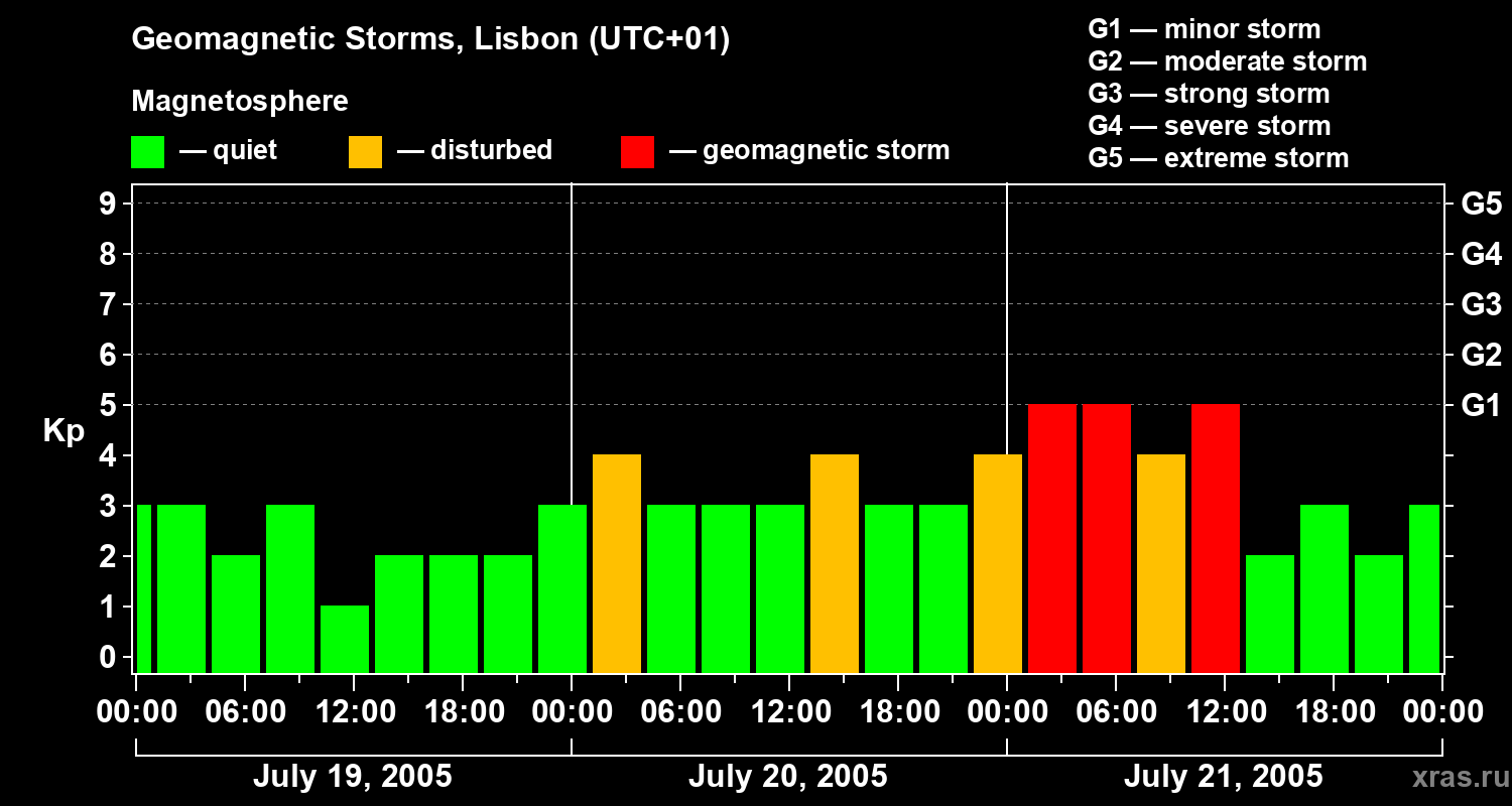 Geomagnetic storms in Lisbon on Jul 21, 2005