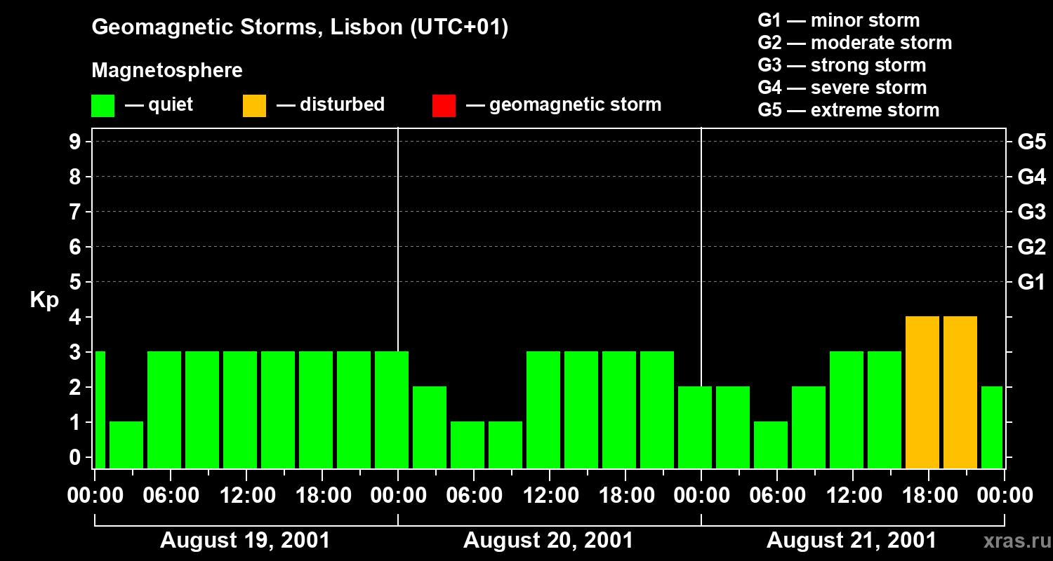 Geomagnetic storms in Lisbon — Aug 21, 2001