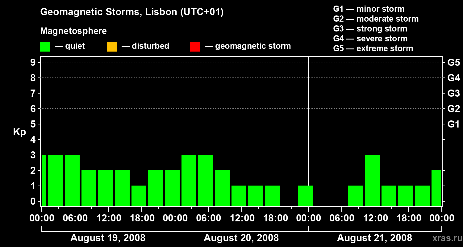 Geomagnetic storms in Lisbon — Aug 21, 2008