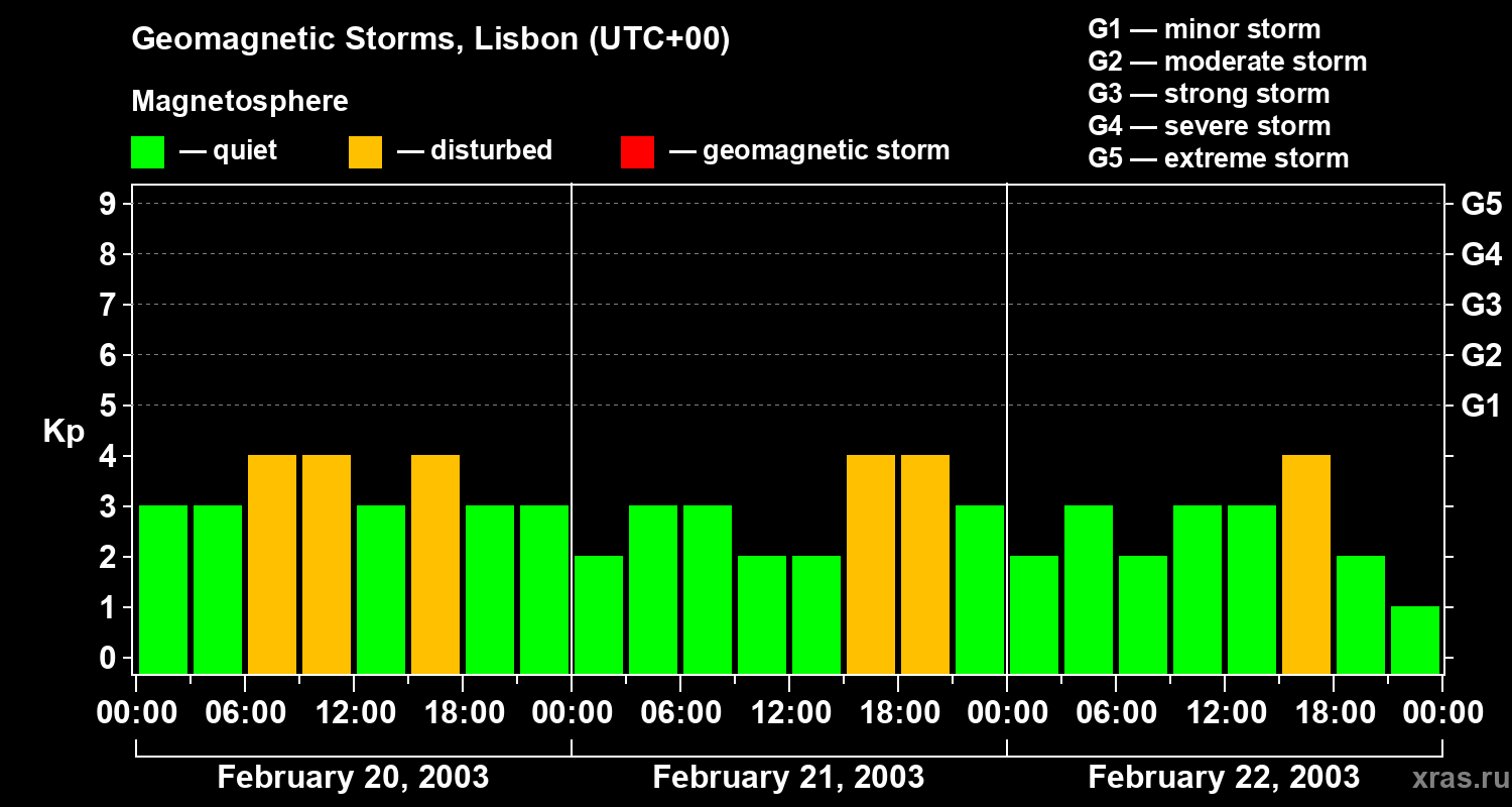 Geomagnetic storms in Lisbon — Feb 22, 2003