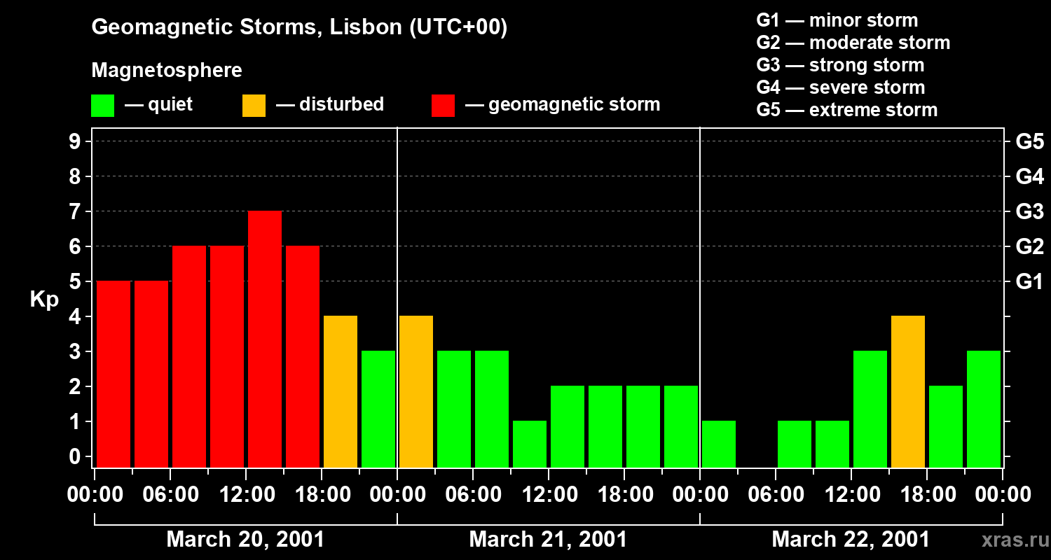 Geomagnetic storms in Lisbon — Mar 22, 2001