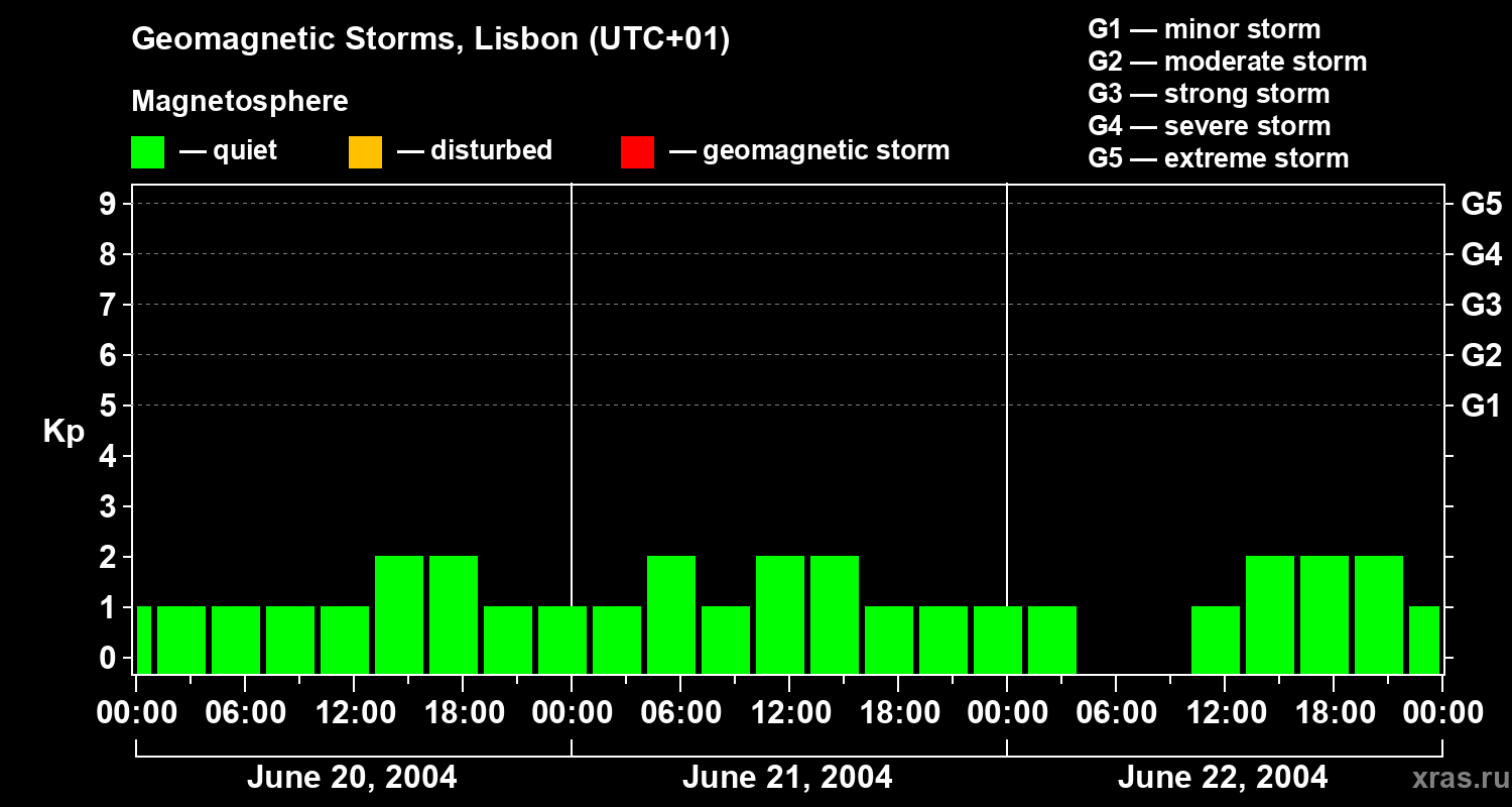 Geomagnetic storms in Lisbon on Jun 22, 2004