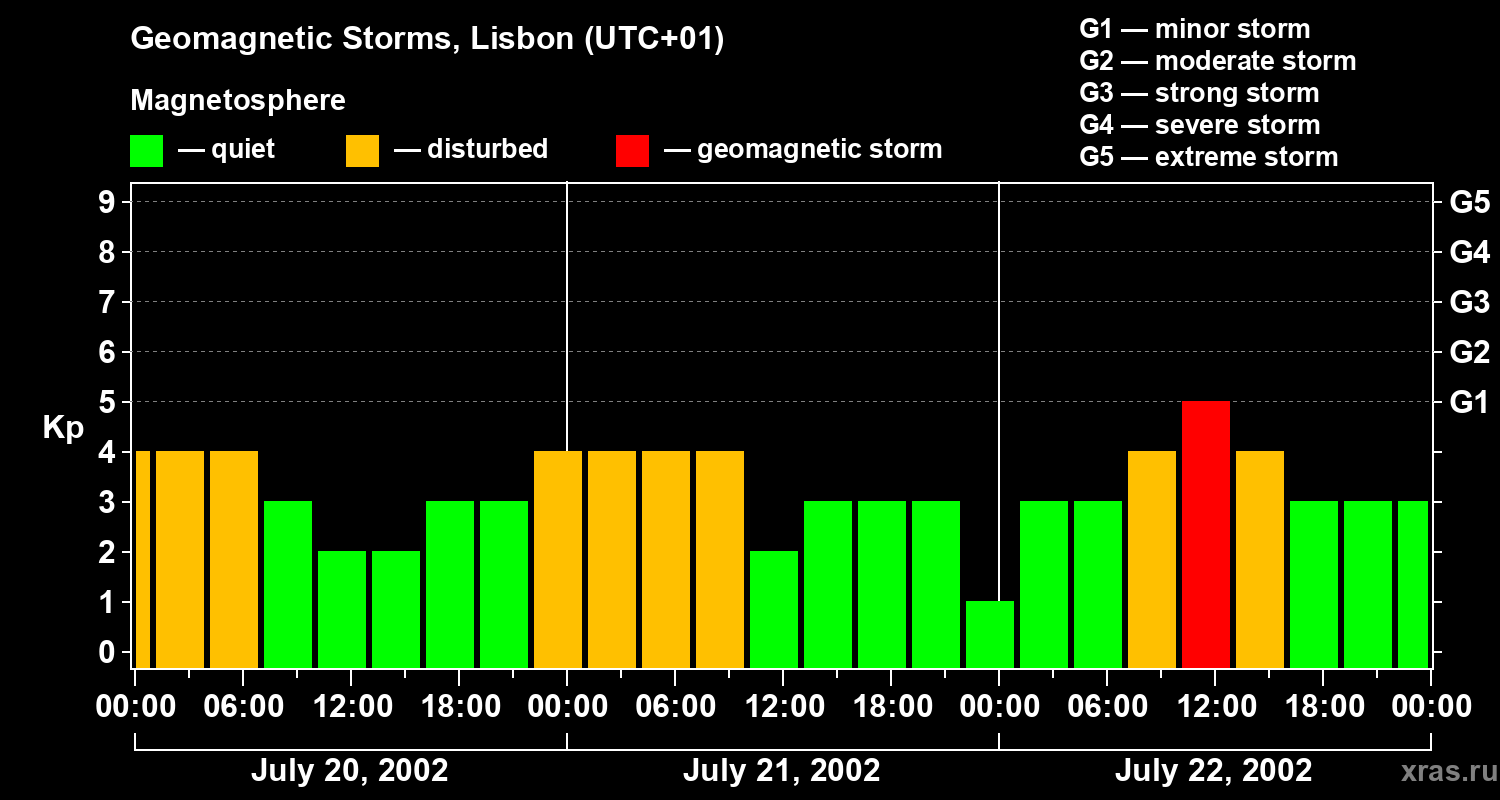 Geomagnetic storms in Lisbon on Jul 22, 2002