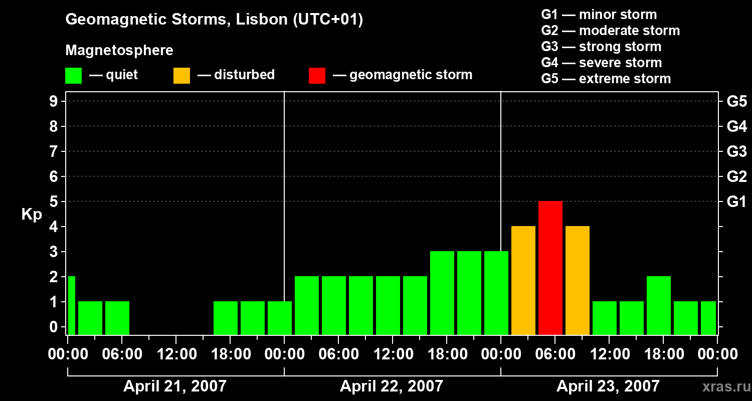 Geomagnetic storms in Lisbon — Apr 23, 2007