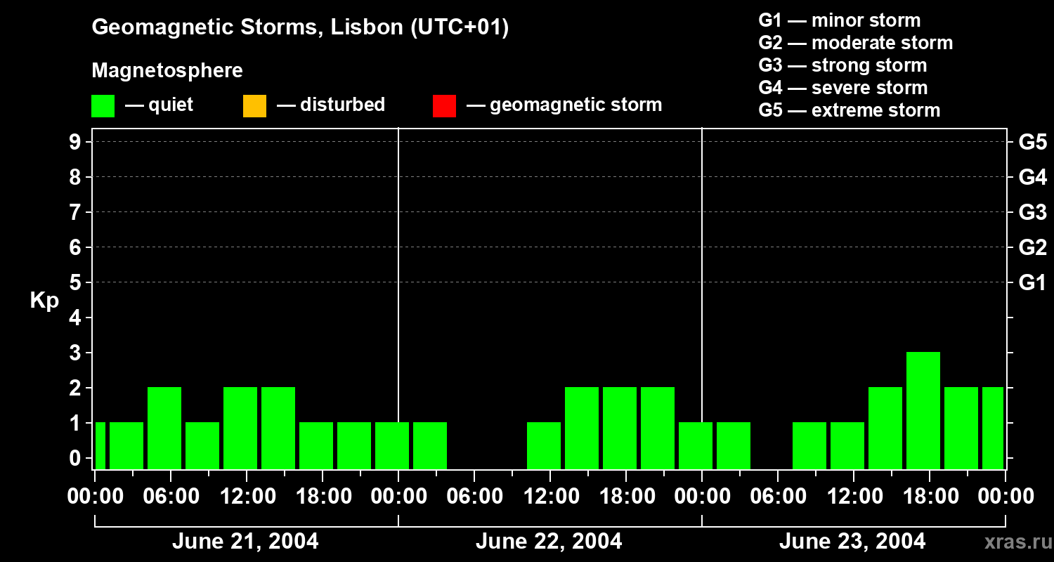 Geomagnetic storms in Lisbon on Jun 23, 2004