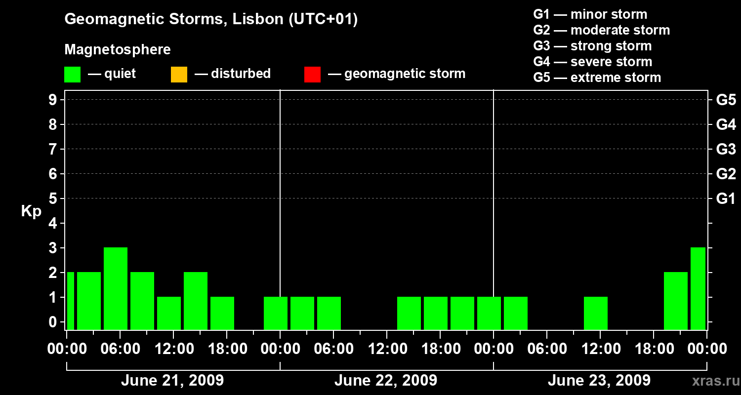 Geomagnetic storms in Lisbon on Jun 23, 2009